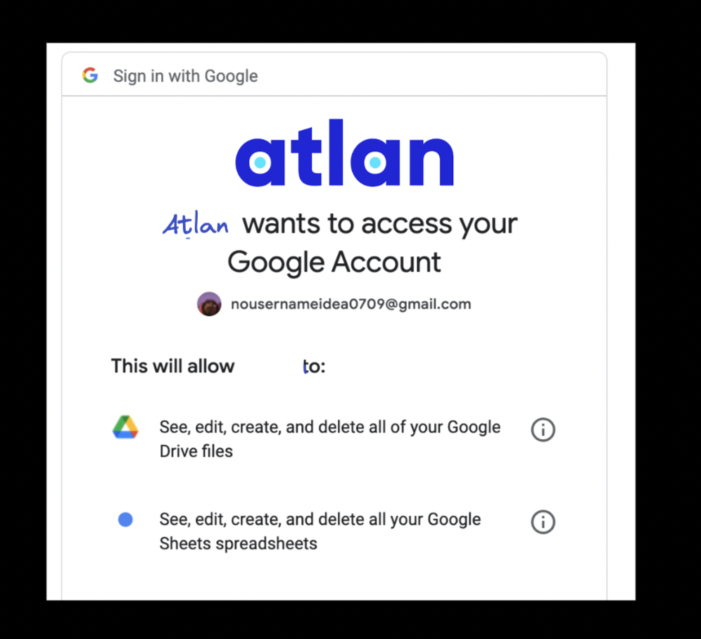 For this use case, we first connect our application to our google account and give permission to edit add and delete google sheets.