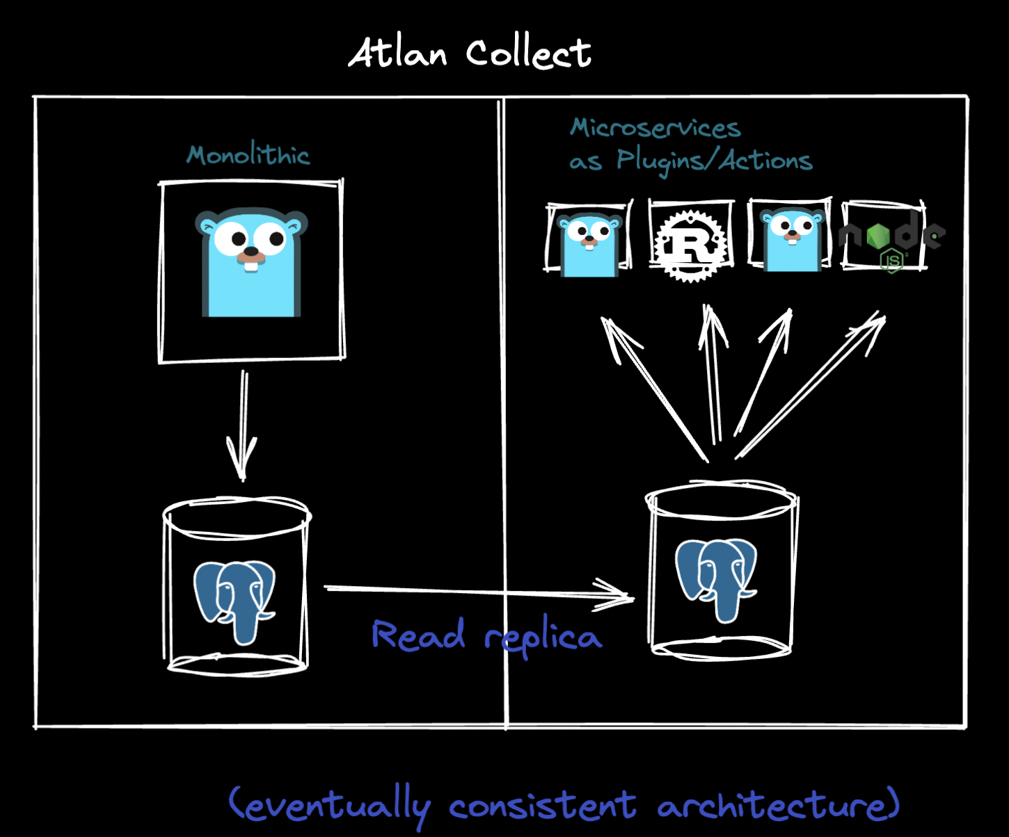 Here comes the fun part, I have made a basic schematic working model of atlan collect. The models are very basic, these apis are just for reference for our plug-and-play architecture. I have made the main api in GoLang and the database of choice is PostgreSQL. Why Golang 🤔