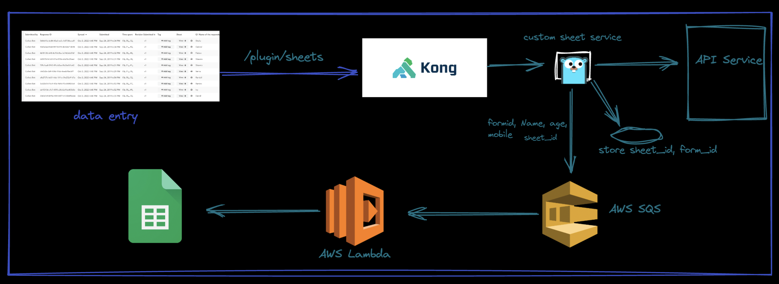 When the data is being added to collect, we send the data to plugin sheet service via kong.